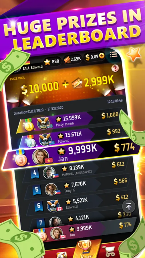 Actively participate in the Cash Mode, no matter whether you win or lose, you can enter the season leaderboard after getting a few stars. The higher you rank, the more prizes you get. The 1st place will get a huge prizes!