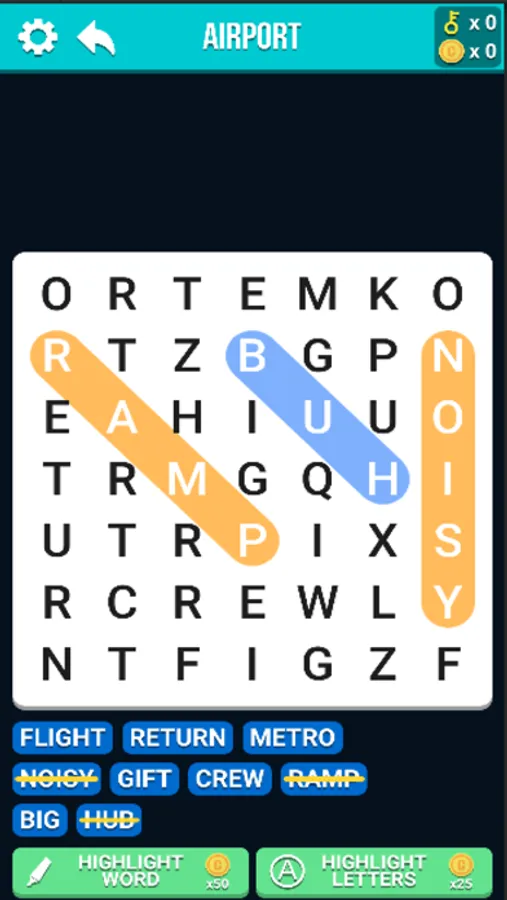Fun Word Challenge is a puzzle game where you have to find all the words on a given grid of 7x7, 10x10 and 13x13 boards.