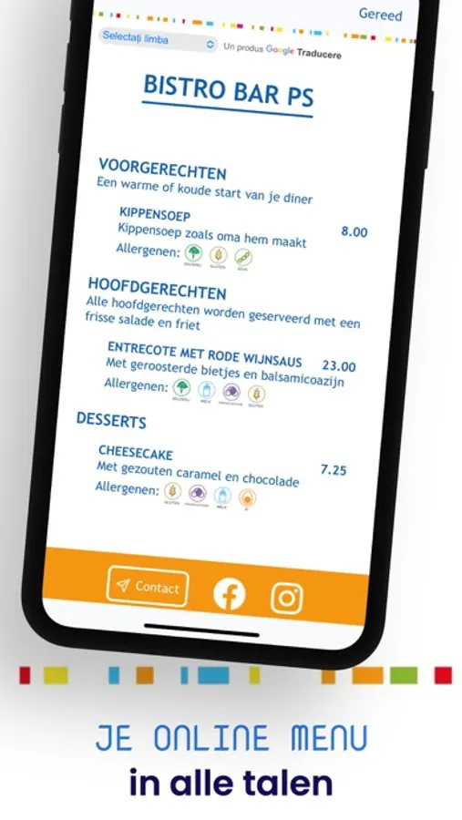 Middels de meertaligheid van de menukaart is je menukaart ook eenvoudig en snel te vertalen.