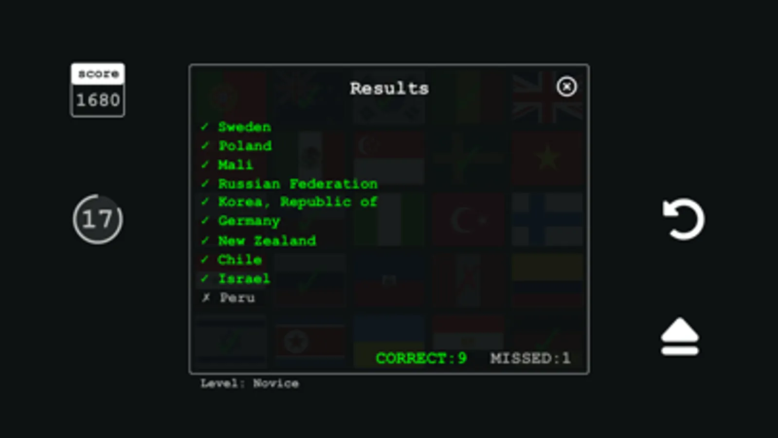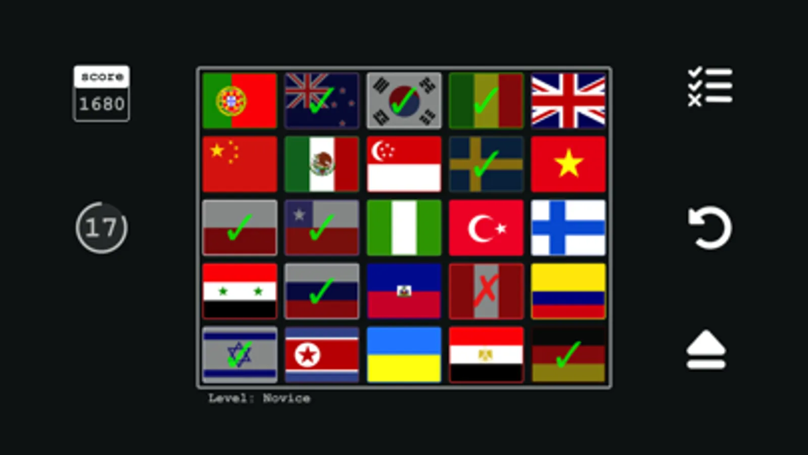 ● 3 Levels of difficulty (Novice, Intermediate, Expert). In the Novice Level, we use the most popular national flags.