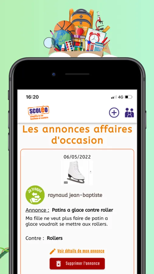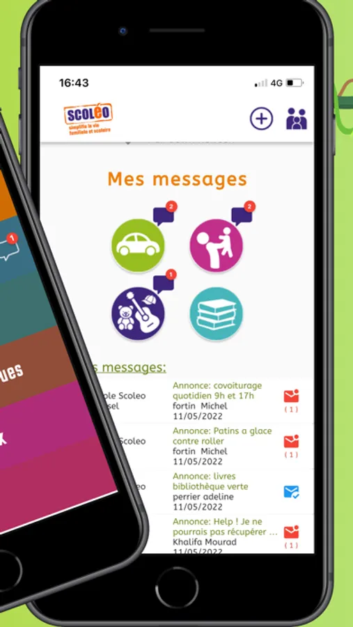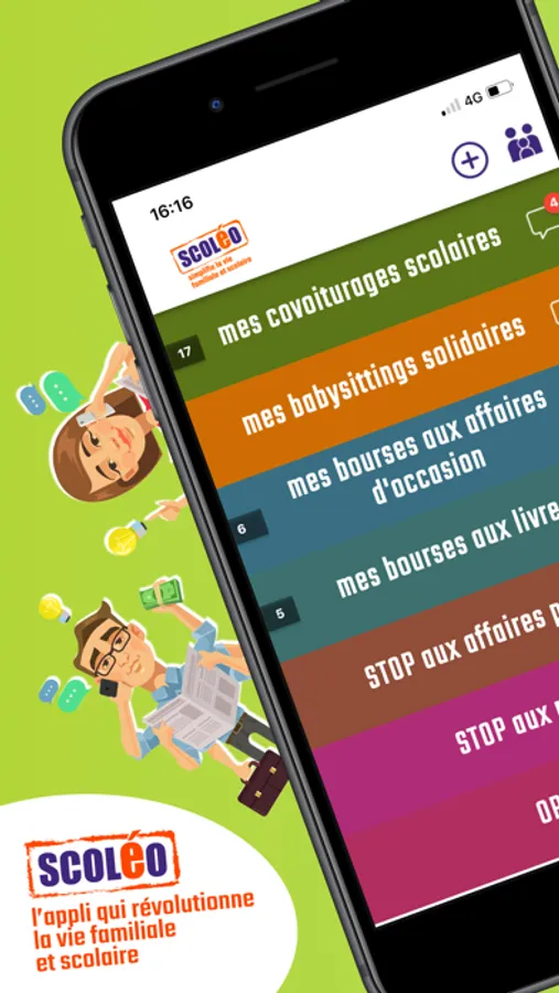 Scoléo, l'application qui révolutionne la vie familiale et scolaire, offre aux parents d'élèves d'un même établissement scolaire la possibilité d'être mis en relation afin de mutualiser leurs déplacements, de faire du troc de baby-sitter ou échanger/vendre/acheter tout ce dont vous pourriez avoir besoin, et bien d'autres choses encore.