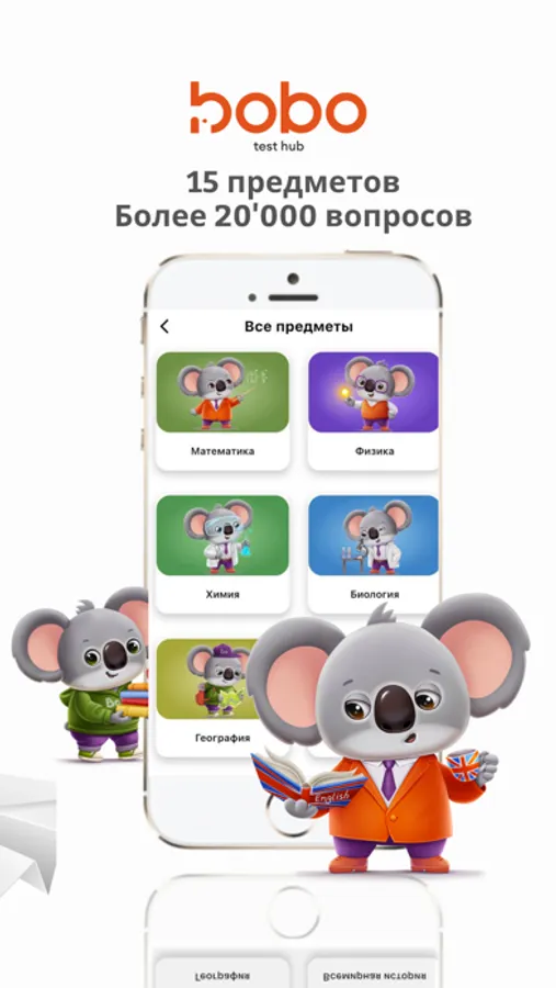 - Более 20 тысяч актуальных вопросов по всем 15 предметам