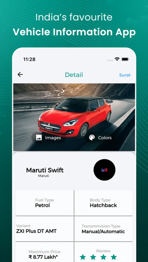 Car colors information. Car Exterior and Interior details like the dashboard, Steering wheel, etc. and Car Body Type, Fuel Type, Variant information.