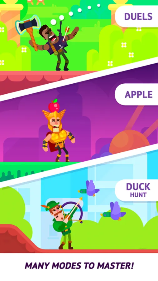 • SEVERAL FUN GAME MODES. Shoot down birds or fruits, defeat enemies in duels and get paid for it!