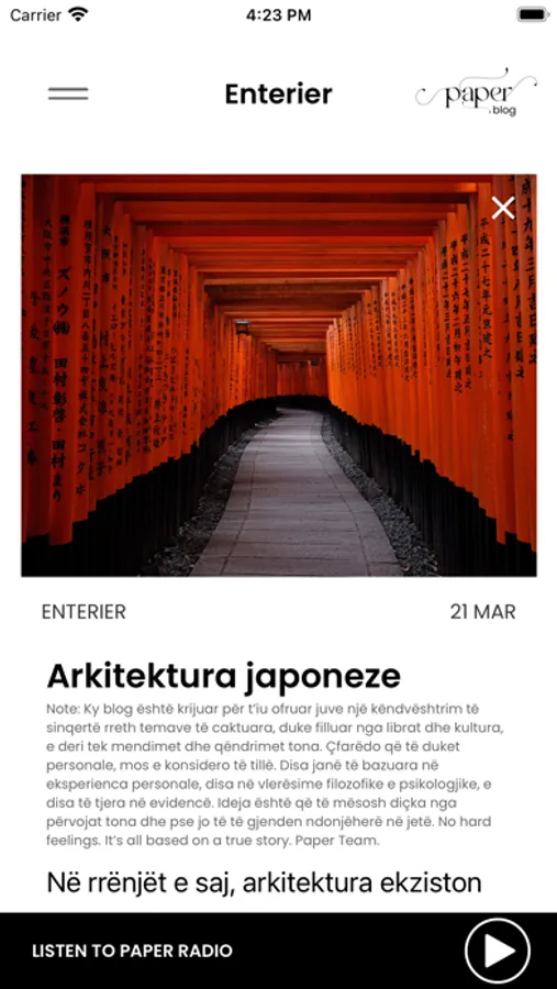 Aplikacioni Paper FM ju mundëson të dëgjoni Paper Radio në paisjen tuaj, si dhe të informoheni me lajmet më të reja.