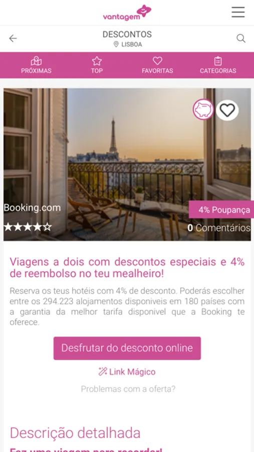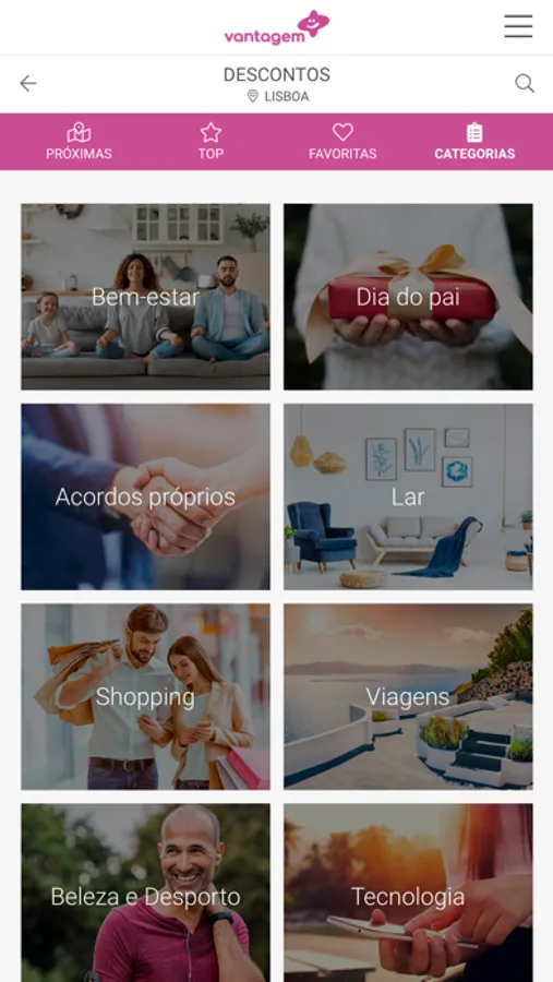 - Pesquisar por categorias (exemplos: viagens, restaurantes, tecnologia, desporto, automóveis, lar, moda);