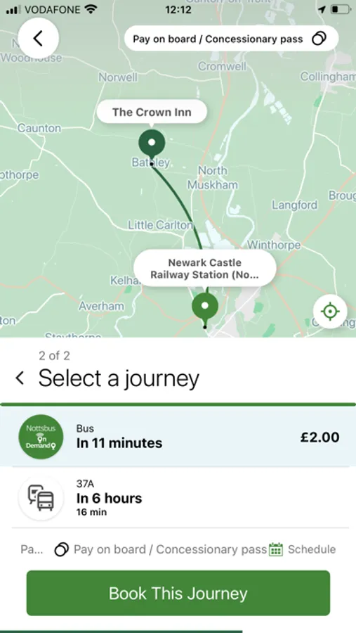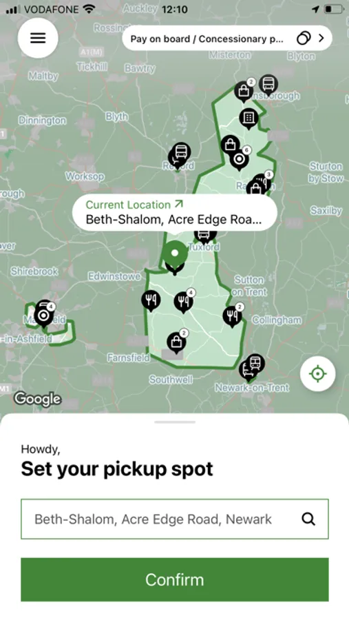 Before your journey is confirmed you will be asked if you want to pay through the app or when you get on the bus. If you have a concessionary pass you can add this to your user profile in the app.