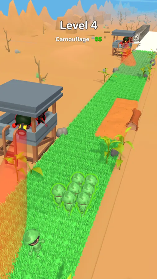 Camouflage and hide from enemies. Avoid lights and traps. Be careful where you step. Rescue the captive soldiers.