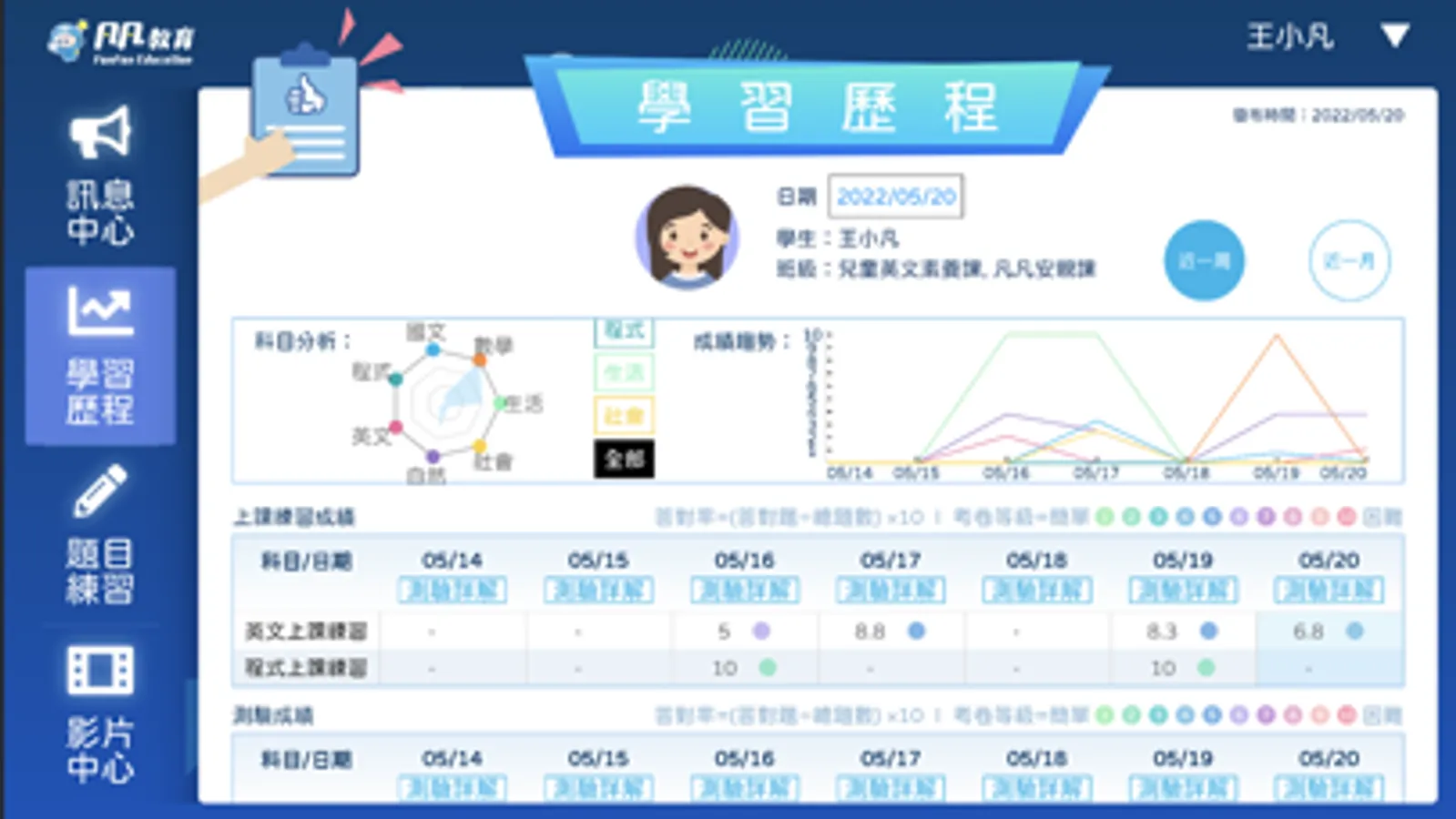 測驗即時產生個人學習報告,爸爸、媽媽隨時查閱沒煩惱!