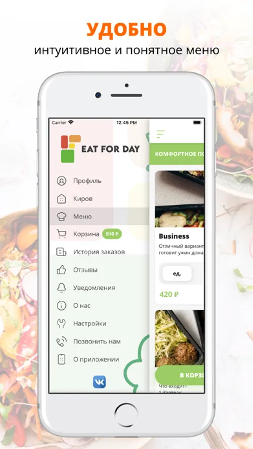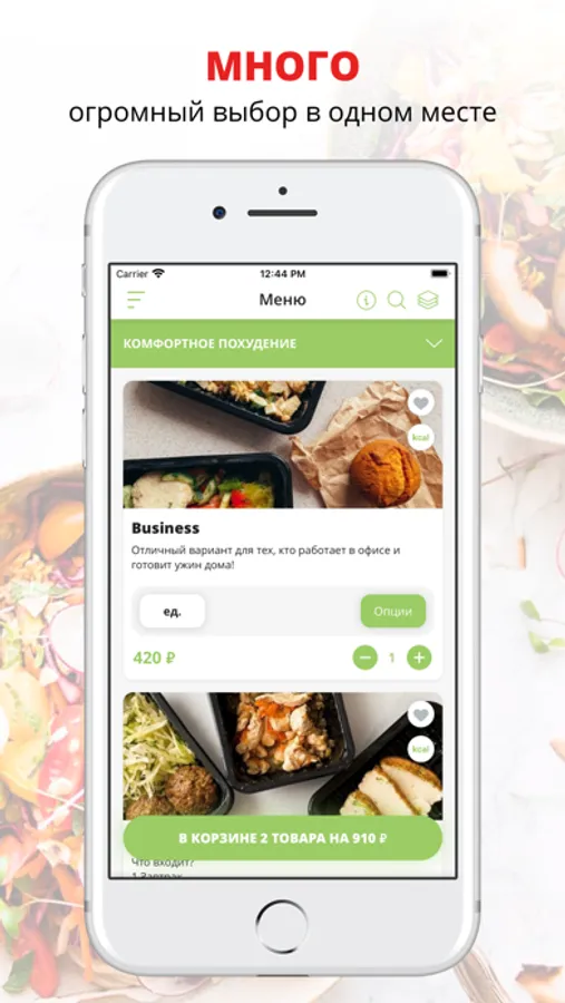 В приложении Вы найдете более 11 рационов на выбор с бесплатной доставкой.