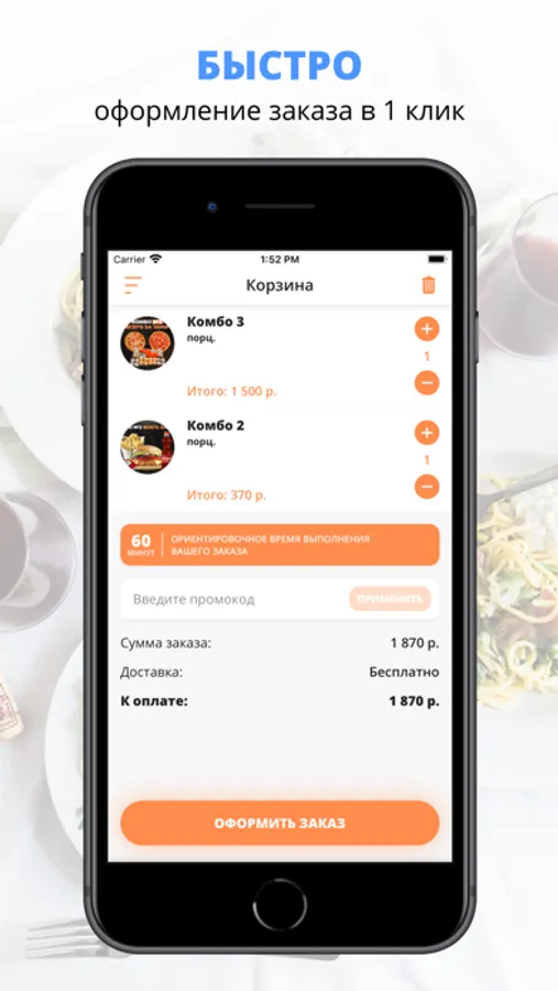 Скачивайте наше приложение, оформляйте заказ и наслаждайтесь любимой едой, где бы Вы ни были! Приятного аппетита!