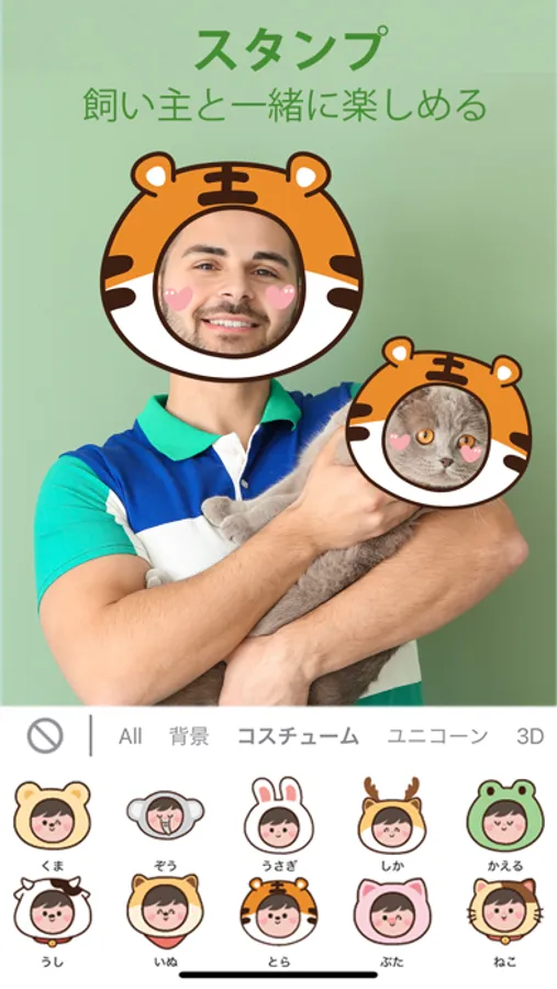 ・飼い主とねこちゃんが一緒にスタンプを楽しめる