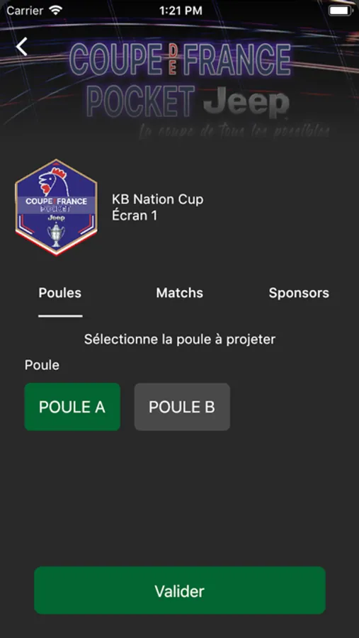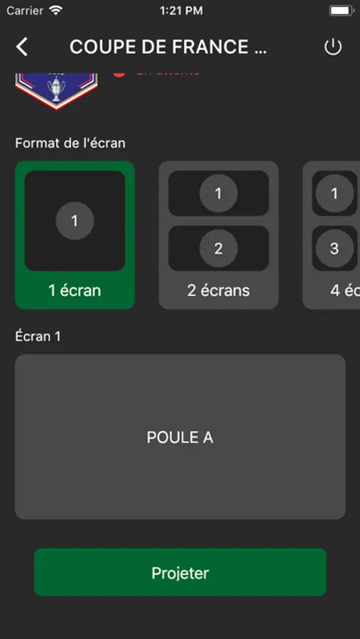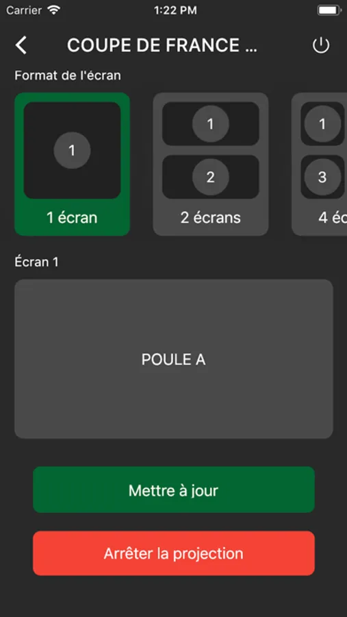 La télécommande te permet de choisir le tournoi que tu souhaites projeter. Tu pourras projeter les classements de poules, les matchs ou même des photos.