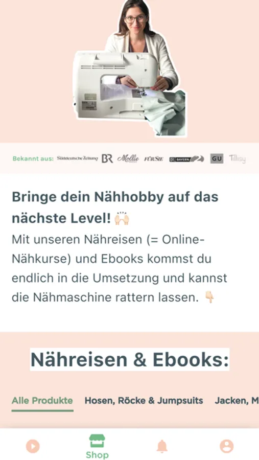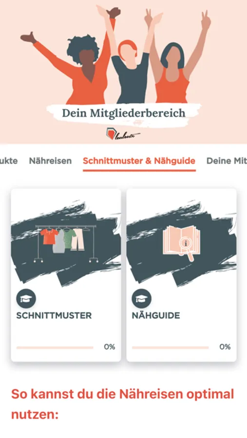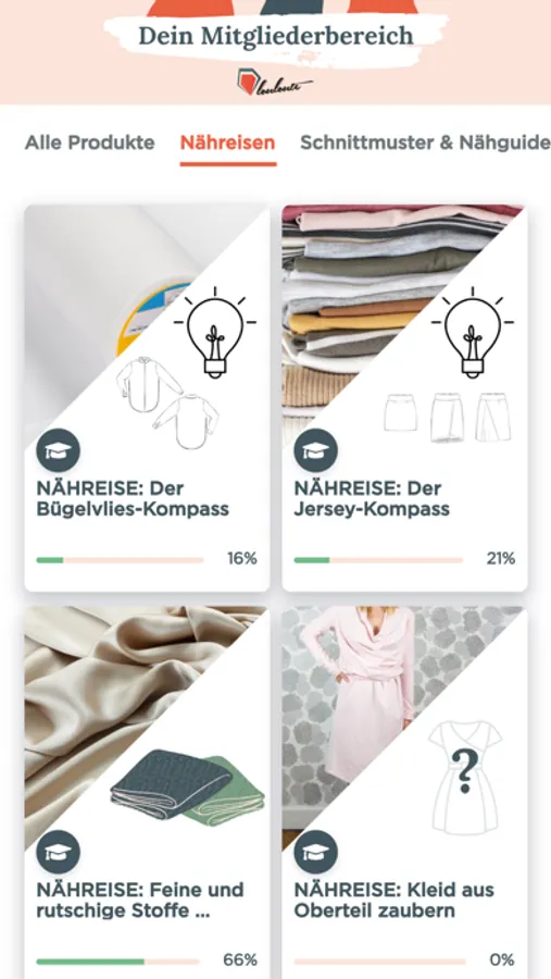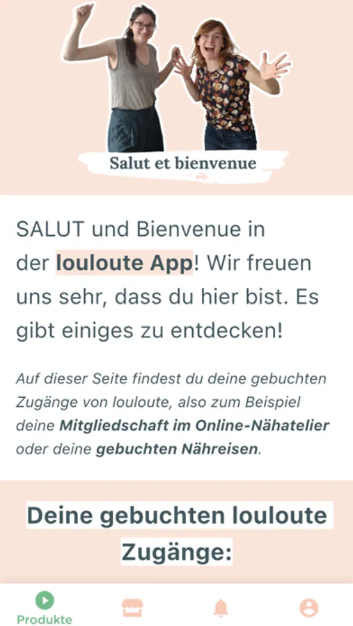 In der App findest du momentan verfügbare Nähprogramme sowie deine gebuchten Nähinhalte. So hast du von überall Zugriff auf das louloute Online-Nähatelier.