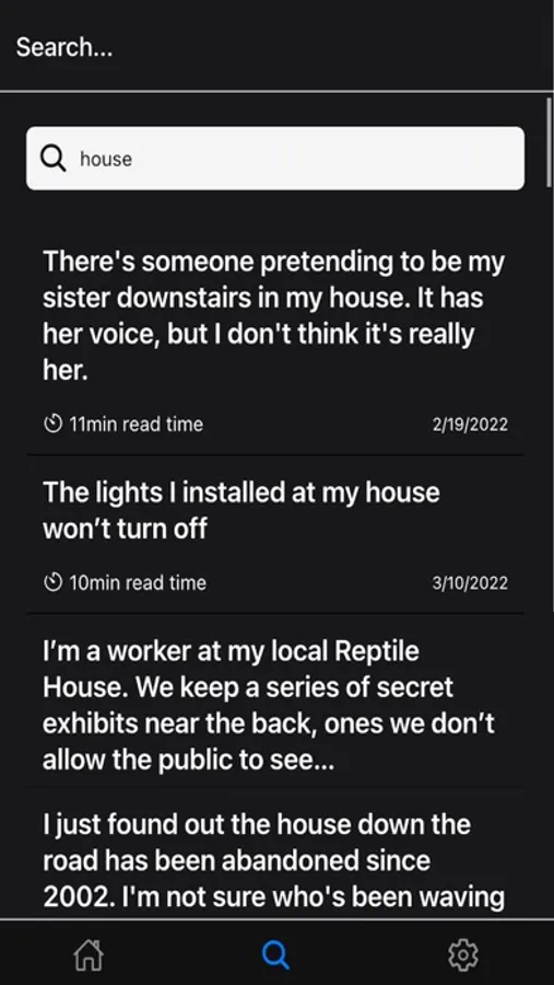 A Dark Place is a collection of horror stories with minimalistic design. Read new stories everyday and save your favorites for later.