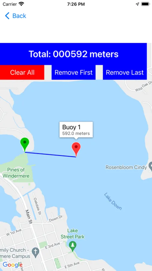 This application allows the user to determine how far it is from their location to another point, and then another, and then another. It will let you modify the path, simply by moving a marker. View the distance in Meters or Miles. View your path on an animated map - or satellite view. Designed to help rowing coaches plan water workouts - it has also been used to estimate distances on roads and trails.