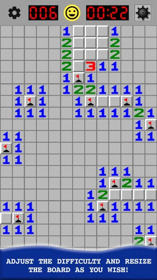 - Adjustment of the difficulty by changing the frequency of appearance of the bombs