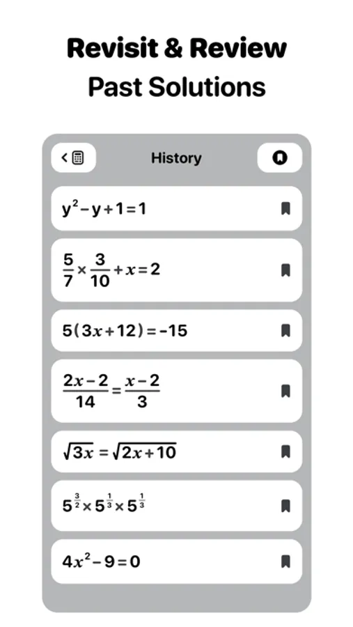 • History: Access and review previous problems and solutions, bookmarking important ones for future reference.