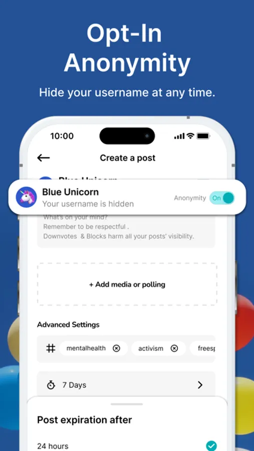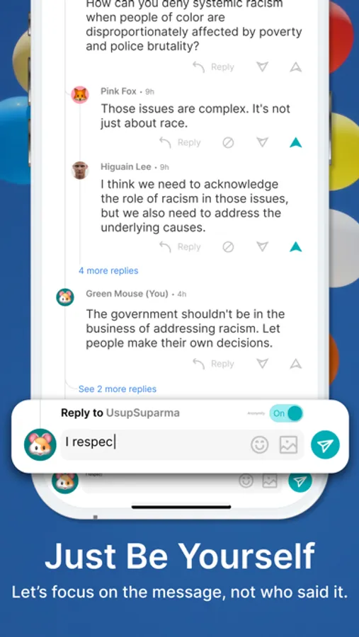 Students, minorities, activists—this is your platform. No more self-censorship. Speak your mind, just like you would in a healthy, real-life community. Anonymity? Your choice. But remember, respect is our currency. Two clicks, and you can block any offenders. No reasons to hold back, but every reason to be respectful.