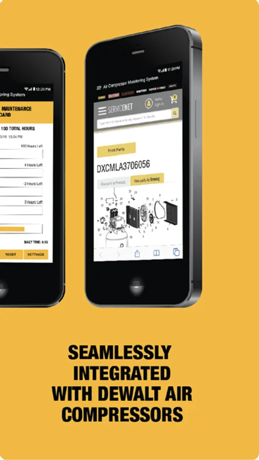 -Access the shopping cart via DEWALT Service Net directly from the app when oil, filters, belts and other parts may be needed to maintain your compressor.