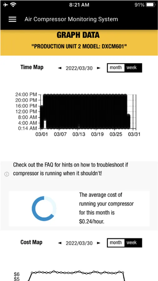 -You choose the time of day to receive the maintenance reminders to check the compressor.