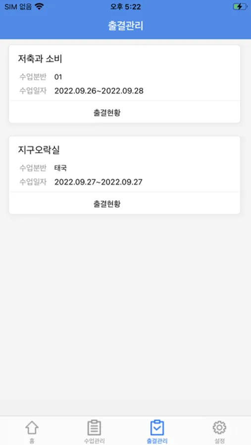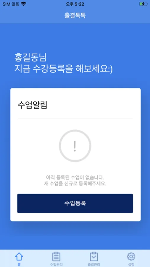 교수자의 수업을 등록하고 출석체크를 할 수 있습니다.