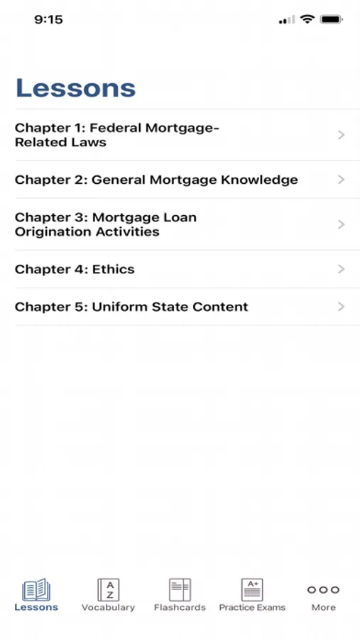 • Lessons - Get a complete review of all the critical and necessary information you’ll need to know for the NMLS SAFE exam including Federal Mortgage-Related Laws, General Mortgage Knowledge, Mortgage Loan Origination Activities, Ethics, and Uniform State Content.
