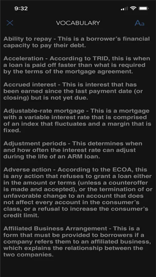 • Vocabulary - An A to Z review of the key vocabulary terms you’ll need to know for the NMLS SAFE exam.