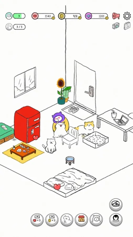 -Meet the various cats that are pretty and spend together. Release your favorite cats and give water and clean the toilet. And whenever you can touch it, please start with healed experience.