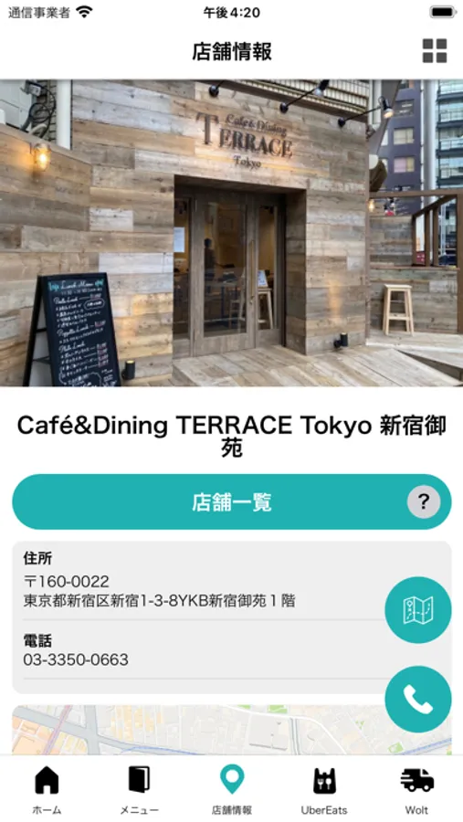 カフェ利用もランチ・ディナー利用も出来るCafé&Dining TERRACE Tokyoの新宿御苑店アプリです。