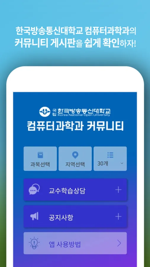 방송대 컴퓨터과학과 커뮤니티는 한국방송통신대학교 컴퓨터과학과 교과목 게시판을 쉽고 빠르게 확인할 수 있는 어플리케이션입니다.