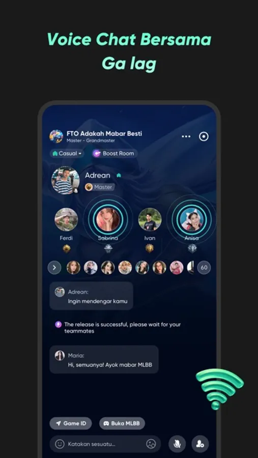 - Obrolan suara gratis dengan rekan tim anda saat bermain