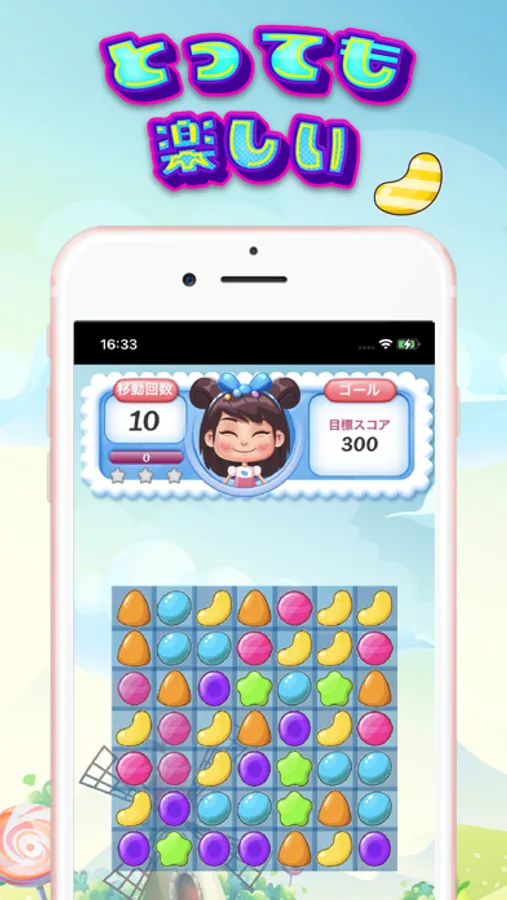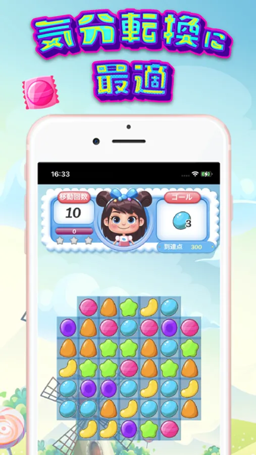 • 同じ種類のキャンディーを組み合わせて消そう