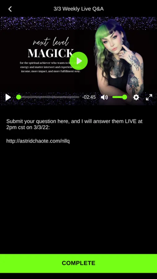 2. Premium Member: Access to all community features Plus get new themed content each week with journaling prompts and practical actions to take to initiate your next level fast! Each month a premium member from the leaderboard is gifted a hot-seat session with Astrid!