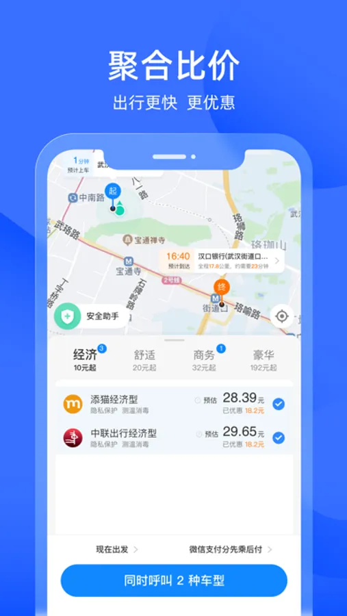 支持多种用车场景,实时用车、预约用车,打车先享后付或预付,安全可靠。