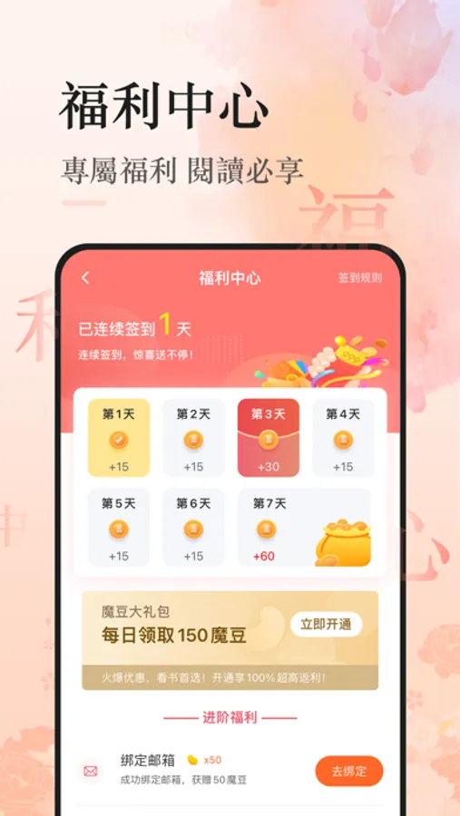 6、每日签到,签到就有礼,阅读也返券,看书更省钱。