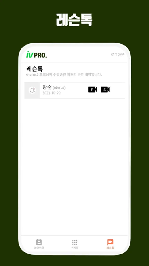 실시간 레슨 스케쥴 관리와 예약현황 열람 및 출석체크가 가능하며, 회원이 요청한 레슨톡을 통해