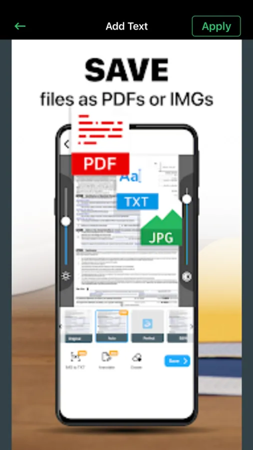Turn your scans into text, so you can read, copy, and export it to other apps. SZ Scanner Lite supports 25+ languages: Catalan, Croatian, Simplified Chinese, Traditional Chinese, Czech, Danish, Dutch, English, Estonian, Finnish, French, German, Greek, Hungarian, Italian, Japanese, Latin, Norwegian, Polish, Portuguese, Romanian, Russian, Spanish, Swedish, Tagalog, Turkish and Ukrainian.