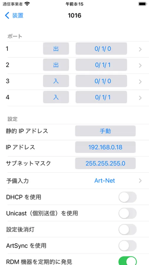 EtherMXSetM アプリは、弊社製 DMX/Art-Net(sACN)変換装置である「EtherMX」およびその派生製品(ExD、Ex8)の設定を確認/変更するためのユーティリティです。すでに macOS 用に「EtherMXSet」を提供していましたが、ユーザー様の利便性向上のため、あらたにモバイル端末用のアプリを用意しました。お手持ちの iPhone や iPad を使用して、現場内を移動しながら、手軽に装置の設定の確認および変更を行うことができます。