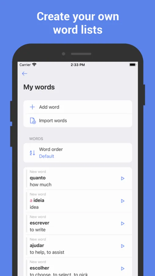 • Add your own Portuguese words and categories easily: you can create your own word base you want to master first.