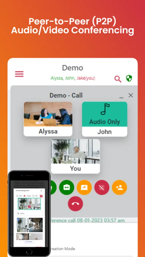 Seamless Audio/Video Communication: Enjoy crystal-clear, Peer-to-Peer (P2P) audio and video calls. Add virtual backgrounds to make your calls even more exciting!