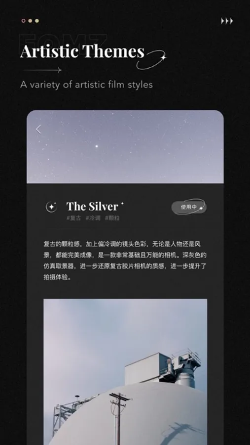 Just as every camera has a story behind it, every Fomz camera theme will also have its own characteristics and meanings. Different shooting interfaces will bring you a different mood every time you shoot.