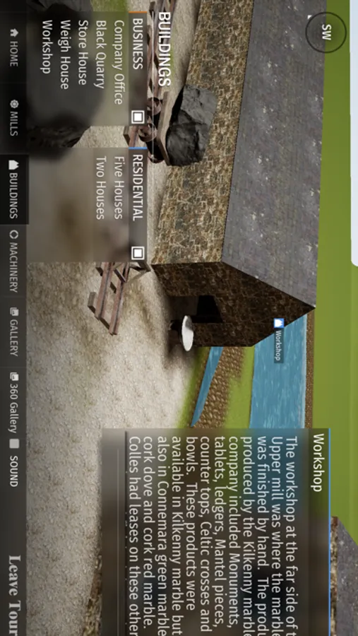 This App was designed to explore the mills site at Maddoxtown co Kilkenny. The App is best experienced on the walking trail as it brings to life the Mills and connected buildings that now lay in ruins. The ruins are on the Nore Valley walk from Kilkenny city to Bennettsbridge. For Over two hundred Years the Mills Harnessed the Power of the River Nore to Cut, Shape and finish Kilkenny Marble. The Mills at Maddoxtown co Kilkenny were part of a Thriving Industry located just outside the Marble city in Ireland. For Over two hundred Years the Mills Harnessed the Power of the River Nore to Cut, Shape and finish Kilkenny Marble. The ruins of 4 Mills and connected buildings are still visible in the undergrowth today. Use the Menu Buttons at the Bottom of the Screen to Explore the 4 Mills and Connected Buildings. The Sub menu Buttons will position the Camera at your Selection. An Information Panel Provides and Overview of your Selection. The App also includes some short narrated sound clips to help give context. The sound can be switched on and off with the app.