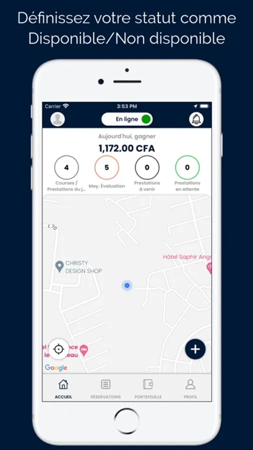Inscrivez-vous en tant que Prestataire (Livreur, chauffeur, prestataire de service professionnel) et boostez votre chiffre d’affaire car les gens commandent tout en ligne, de la nourriture de l’épicerie, des médicaments à la réservation de consultation video en ligne avec des médecins et des instructeurs de yoga, des chauffeurs de taxi, des chauffeurs privés et aussi la location de voiture de luxe.