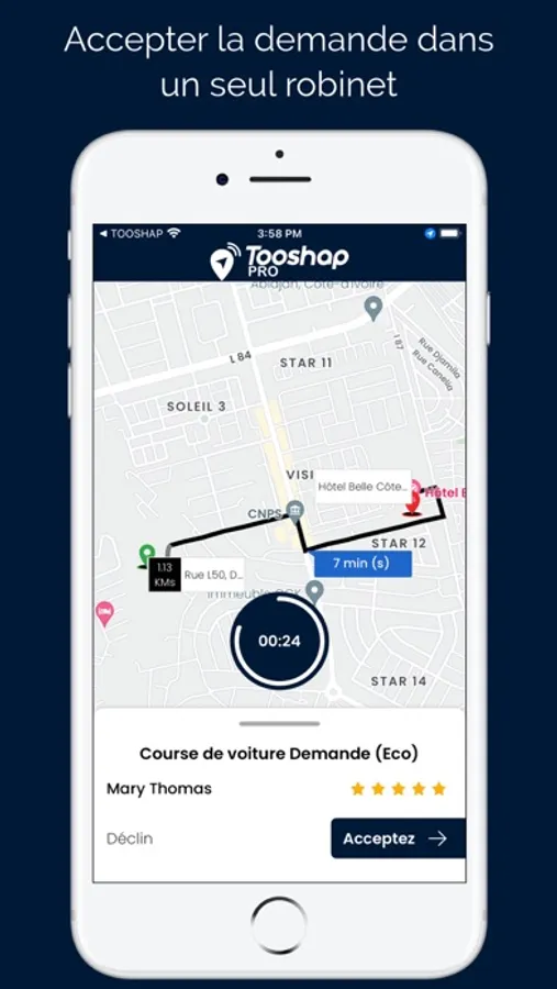 3 – Appelez immédiatement le client à l’aide de la fonction d’appel dans l’application en accusant reception de l’acceptation de la demande