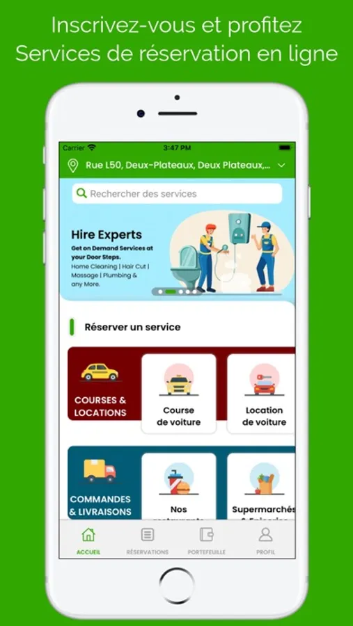 Courses de taxi, location de voiture, course de moto, location de moto, restaurants et magasins, pharmacie et épicerie, transport et logistique, mecanicien, plombier, electricien, répétiteur, formateur, infographe, reparateur de telephone, spa, beauté et soins, prof de yoga, consultation video en ligne avec des médecins, des avocats etc…