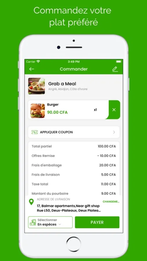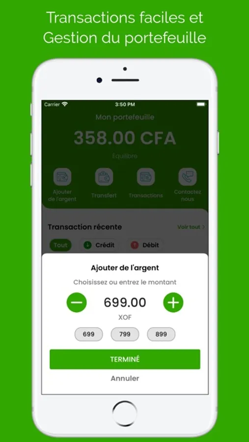 d – Payez en espece ou par carte de credit ou depuis votre portefeuille intégré
