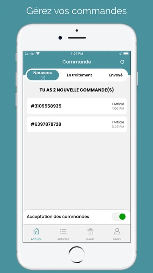 B – Dès que vous recevez des commandes, acceptez-les et commencez à les traiter!