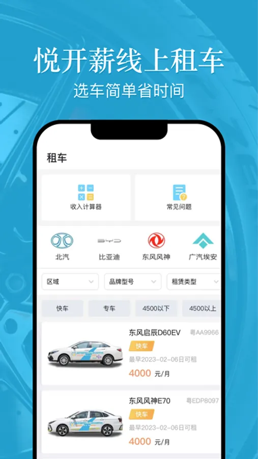 悦开薪app是专注做网约车租赁运营的平台,让资产方不缺司机,让司机能够租到公平合理的车辆,并且司机还能够降低成本提高收入