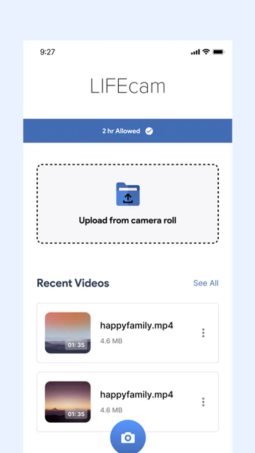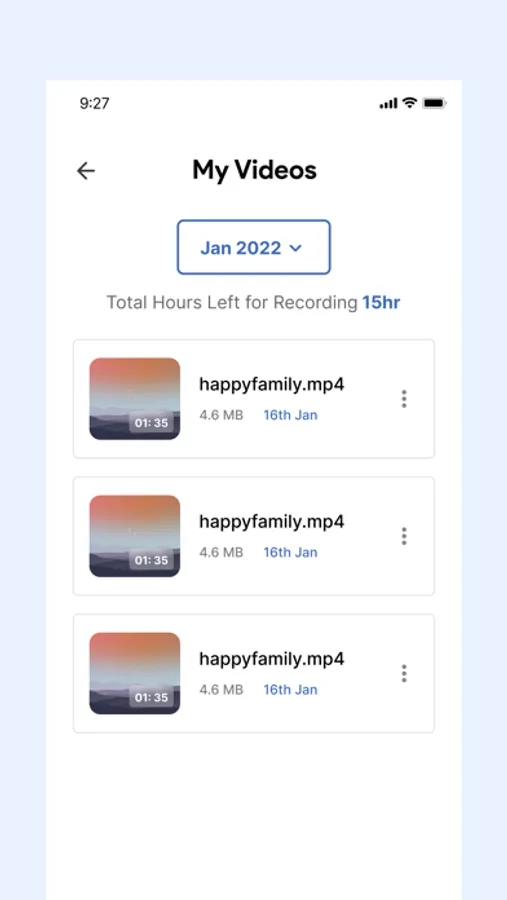 The main goal of the app is to allow users to record videos and save them on cloud storage and they will receive a hard disk drive at the end of every month with all videos uploaded during the month. Users can also upload videos from their storage. Users must subscribe with any plan to get a fixed amount of time for the month to upload videos and can also buy extra time. They can see the name and time of videos uploaded in the current month.